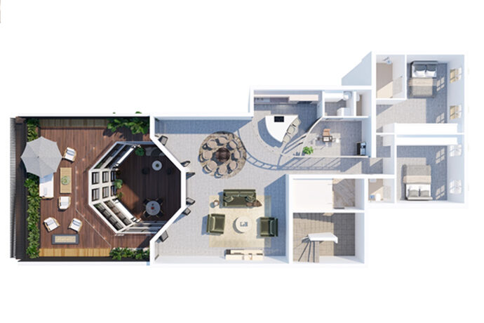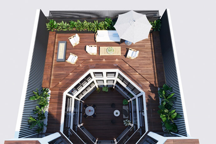 – number of square meters of floor space : 156 m² + terrace 44 m²
