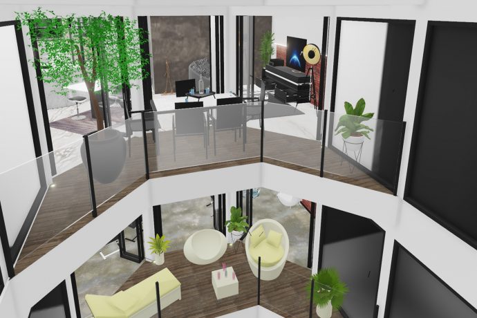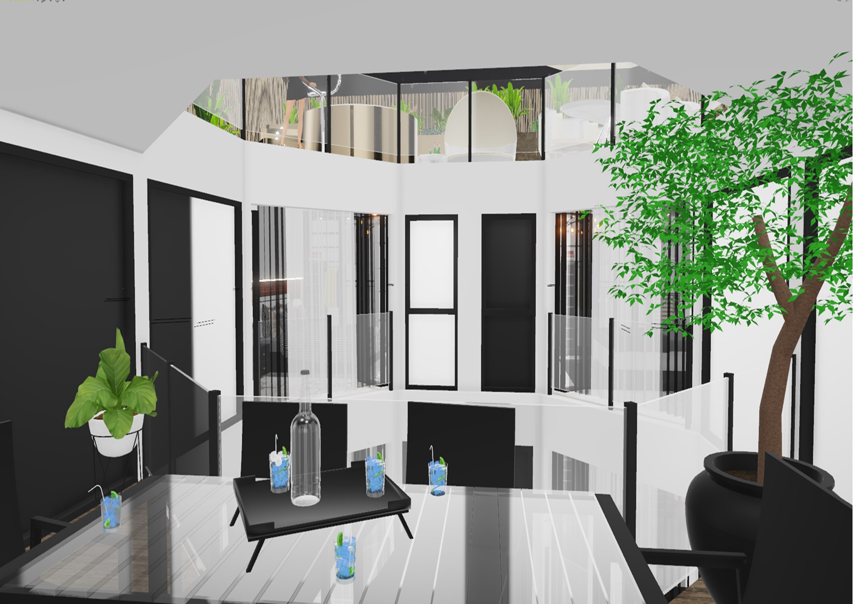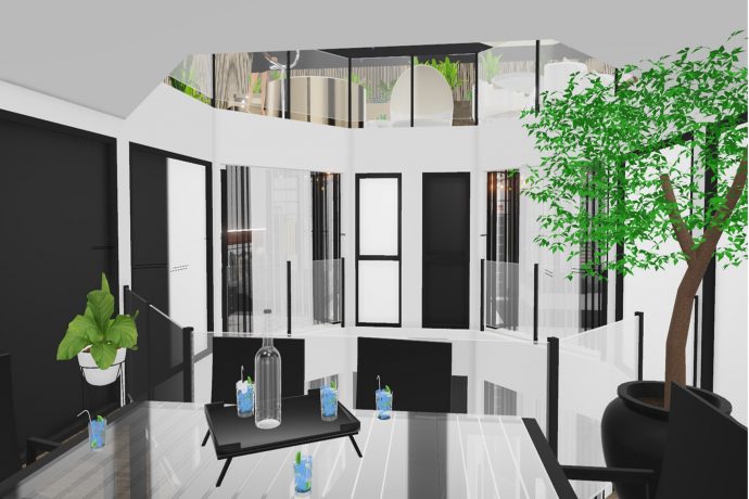 - Menuiseries extérieures noire satin, avec ouverture repliables,